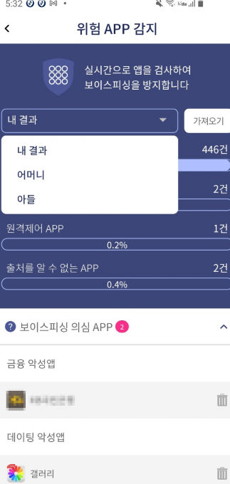 - 탐지된 악성 앱은 원클릭으로 삭제